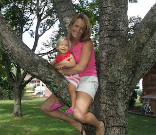 Ryan and I have been saying for months that Reagan is a little monkey with the way she climbs all over everything.  She proved us right when she wanted to climb up the tree in Pop's and Momsey's backyard.  It brought back a lot of memories for me as a child doing the exact same thing, so I couldn't resist joining her!!